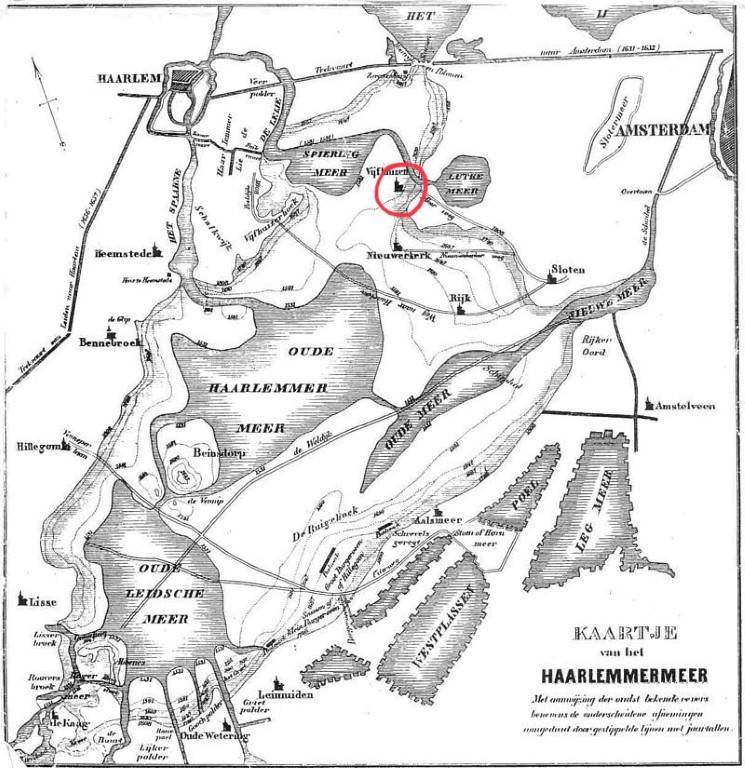 Deze overzichtskaart van de ontwikkeling van de Haarlemmermeer komt ook voor op de website van het Cruquius Museum (http://www.cruquiusmuseum.nl/mapleft.jpg). Daar wordt deze kaart aangemerkt als "historisch", wat ook overeenkomt met de stijl van de kaart, die hem plaatst tegen het einde van de 19e eeuw. Hij is getekend naar het orgineel van Melchior Bolstra uit 1740.