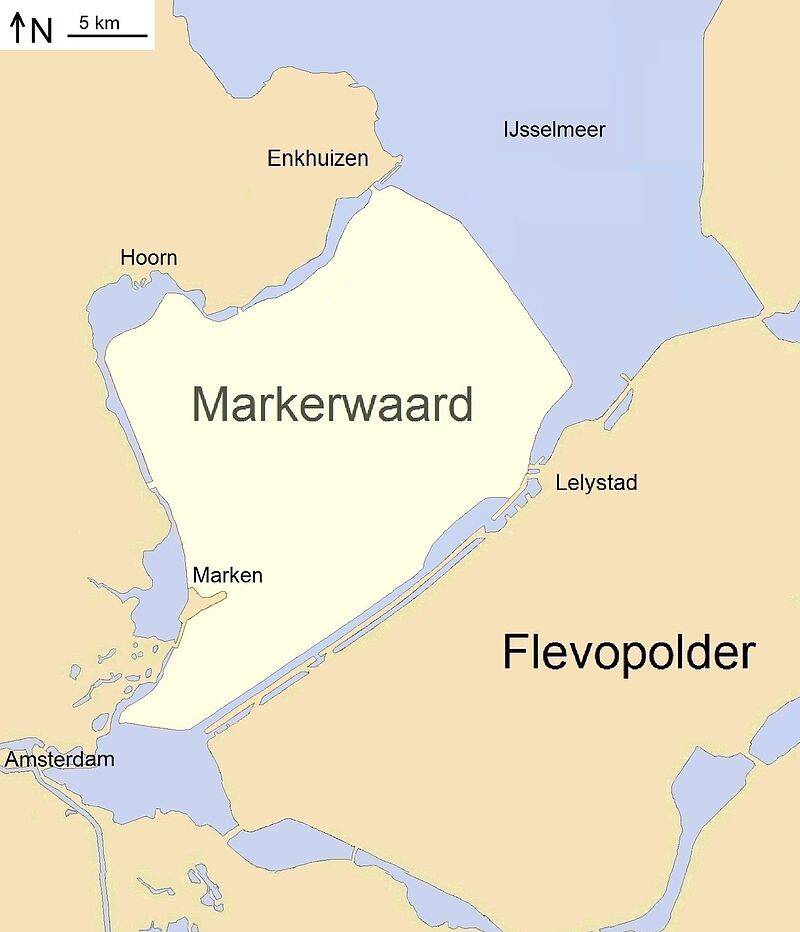 Marken werd in 1957 verbonden met een dijk met het vaste land als onderdeel van de Markerwaard. Sindsdien is het een schiereiland. De Markerwaard zelf is nooit aangelegd. Wel kun je vanaf Marken over de Bukdijk naar het noorden lopen.